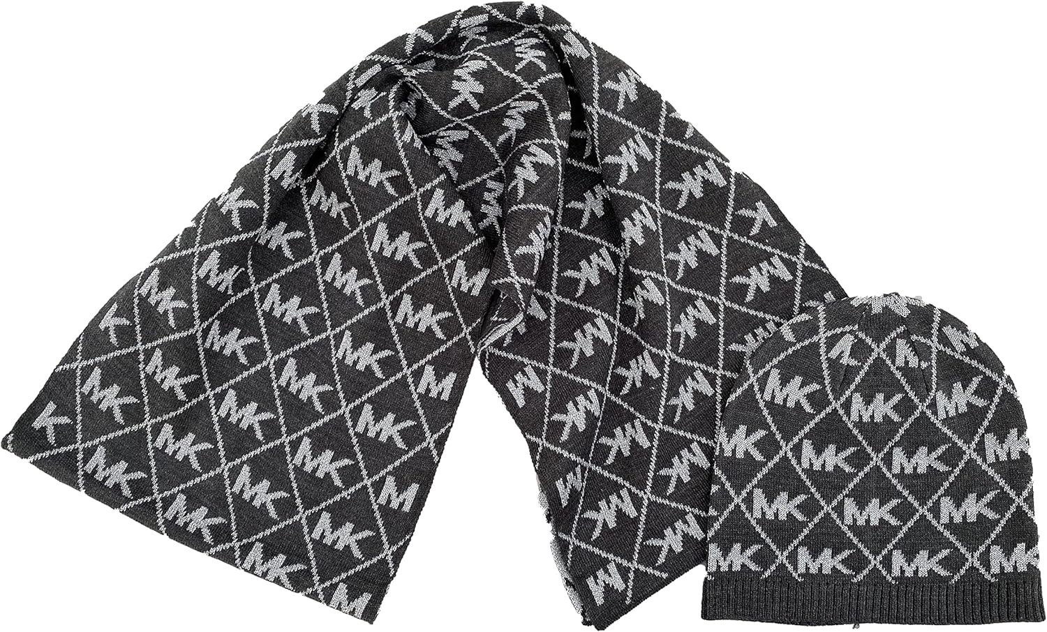 Michael Kors Women`s Metallic MK Diamond Logo Scarf And Hat 2 Piece Set