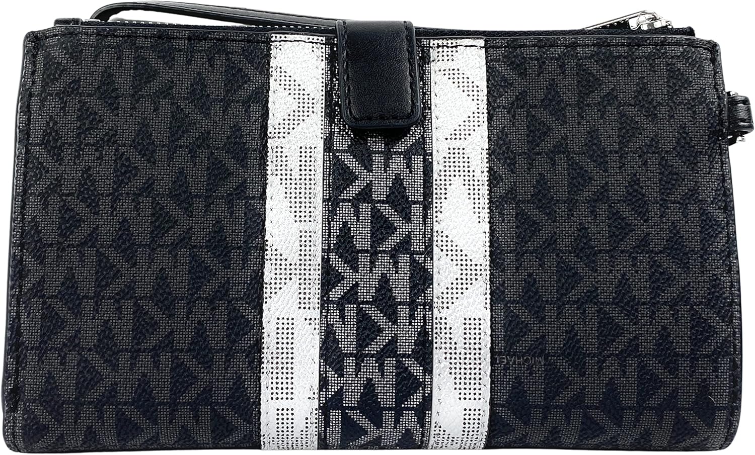 Michael Kors Jet Set Travel Large Double Zip Wristlet in Signature Canvas (Black Multi)
