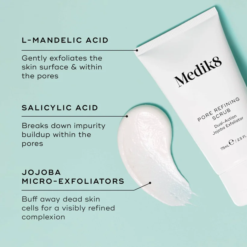 Transforming textured and congested complexions, the Pore Refining Scrub (75ml) harnesses a medley of exfoliating acids and biodegradable grains to gently polish the surface of your skin.