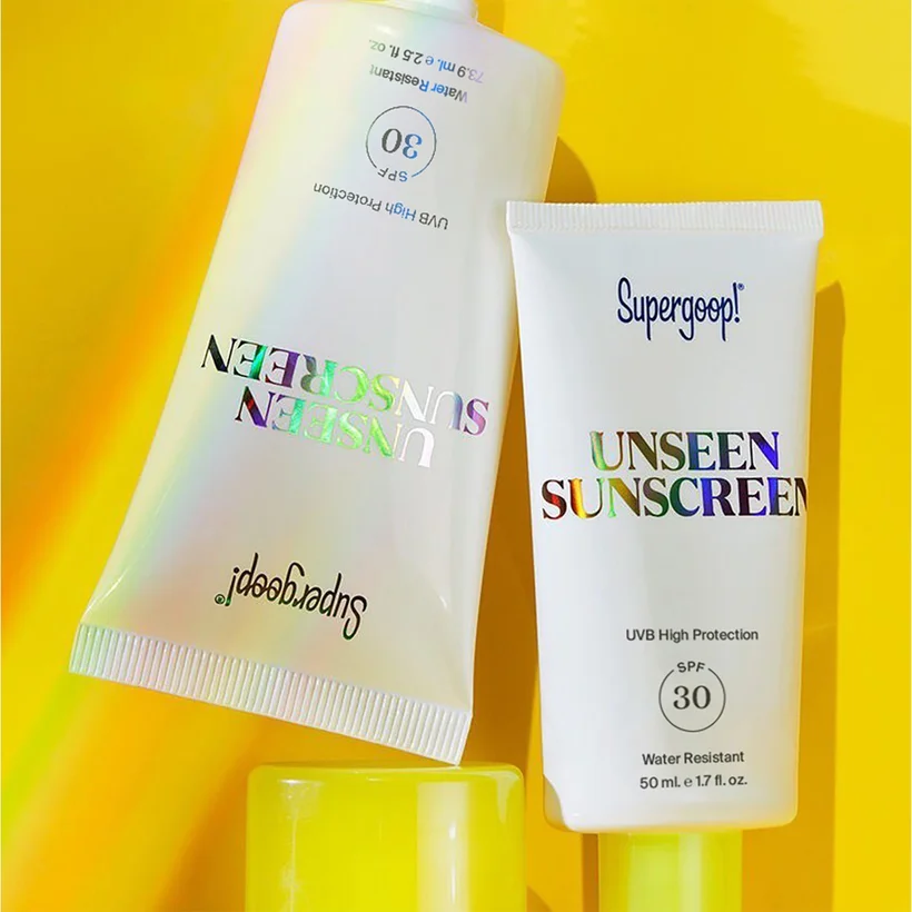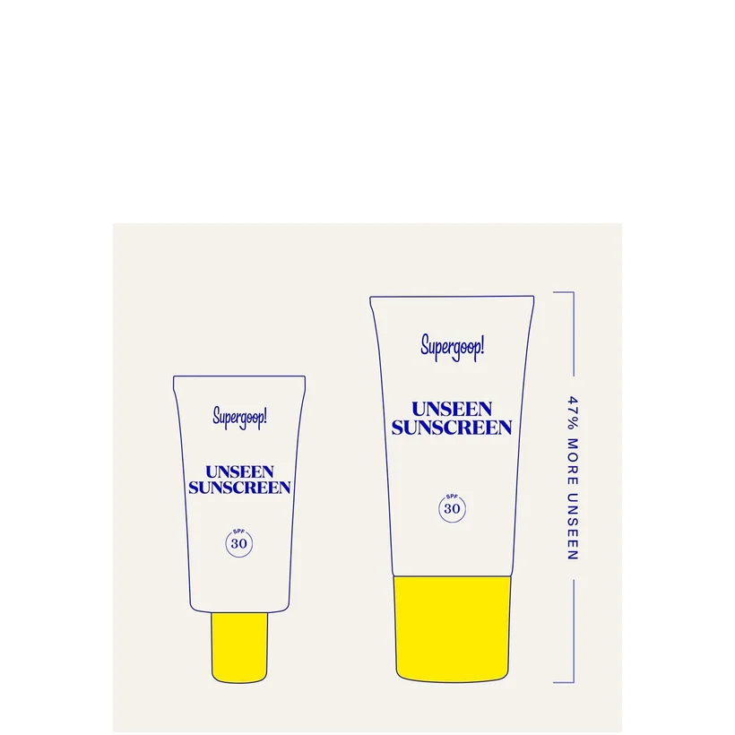 Shield and prep the skin with the Supergoop! Supersize Unseen Sunscreen SPF 30 (74ml).