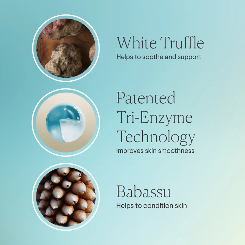 Aqua/Water/Eau, Sodium Lauroyl Sarcosinate, Glycerin, Cocamidopropyl Betaine, Acrylates Copolymer, Polysorbate 20, Coco-Glucoside, Glycol Distearate, Glyceryl Oleate, Sodium Lactate, Dicaprylyl Ether, Phenoxyethanol, Lauryl Alcohol, Fragrance (Parfum), Sodium Chloride, Orbignya Oleifera (Babassu) Seed Oil, Xanthan Gum, Sodium Hydroxide, Caprylyl Glycol, Citric Acid, Propylene Glycol, Chlorphenesin, Glyceryl Stearate, Galactoarabinan*, Papain, Disodium EDTA, Behenyl Alcohol, Butyrospermum Parkii (Shea) Butter, Benzoic Acid, Moringa Pterygosperma Seed Extract, Hydrogenated Castor Oil, Disodium Phosphate, Stearyl Alcohol, Protease, Subtilisin, Tocopheryl Acetate (Vitamin E), Hydrogenated Palm Glycerides Citrate, Tocopherol, Poria Cocos Extract. *Extracted From Larch Tree.